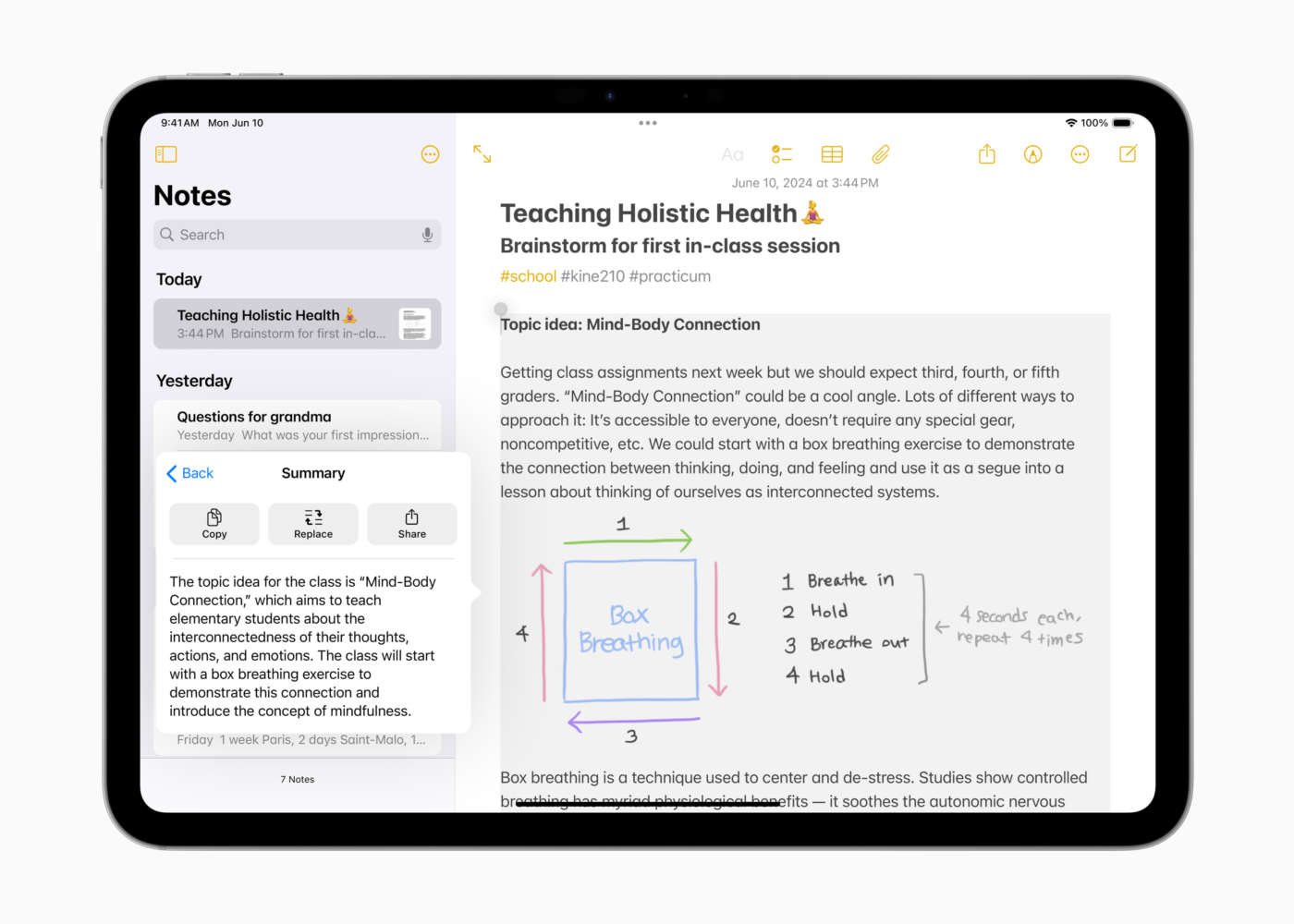 Apple Intelligence, il rivoluzionario sistema di intelligenza personale integrato in iPadOS 18 e progettato intorno alla privacy, offre nuovi modi per ottimizzare la scrittura e comunicare con maggiore efficacia. Con i nuovi Writing Tools disponibili in iPadOS 18 a livello di sistema, l’utente può rielaborare, revisionare e sintetizzare il testo in pressoché qualsiasi app, tra cui Mail, Note, Pages e altre app di terze parti.