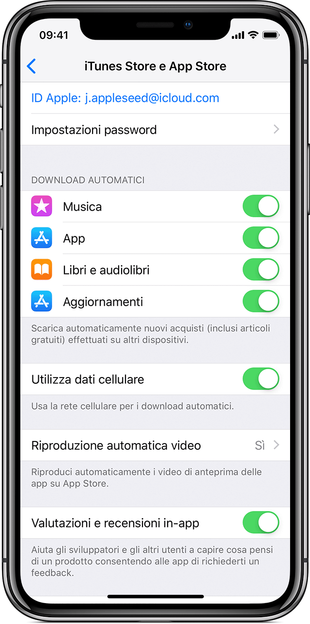 2. Nell’app Impostazioni, tocca la categoria iTunes Store e App Store.