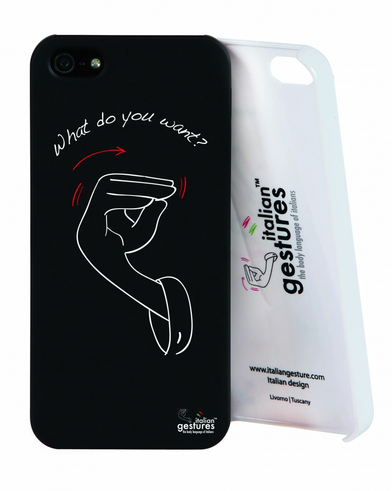 Poi sono arrivate le cover per iPhone, in collaborazione con il distributore Attiva. Si tratta di una custodia rigida, per iPhone 4, 4S e 5, disponibile in nero o bianco e decorata con i disegni usati per le schede dei gesti nell’App. La custodia è racchiusa in un elegante box metallico nero e illustrato – una confezione dalla finitura decisamente inusuale per un comune accessorio per iPhone – ed è fornita insieme a una pellicola protettiva per lo schermo e a un set di sei adesivi raffiguranti ovviamente anch’essi i gesti che contraddistinguono il brand. Sul box metallico che ospita la custodia è stampato un codice QR che porta alla scheda di Italian Gestures su App Store, così il circuito che porta dal virtuale al reale si chiude ricongiungendosi al punto di partenza.