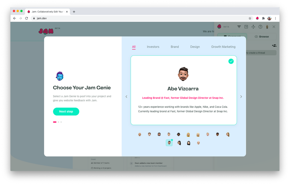 La startup sviluppatrice descrive Jam come un nuovo strumento di collaboration in-the-flow per i team di prodotto che trasforma un sito web in un documento collaborativo, permettendo ai membri del team di aggiungere commenti e creare task direttamente dal prodotto.