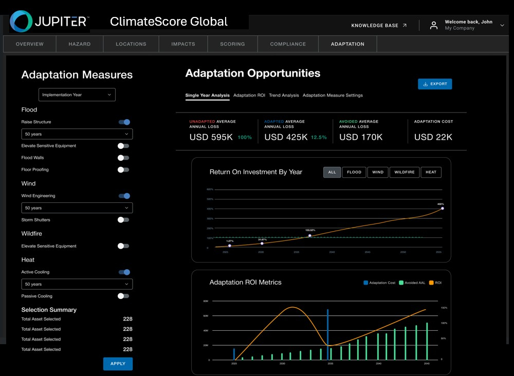 Built on Jupiter's ClimateScore Global platform, which covers the entire planet's surface with 22.3 billion locations and more than a petabyte of climate data, these new integrations represent the first solution to unify entity-level modeling, ROI-backed adaptation, and model risk management-grade metrics. This comprehensive approach enables institutions to move seamlessly from risk assessment to strategic action within a single, trusted platform.