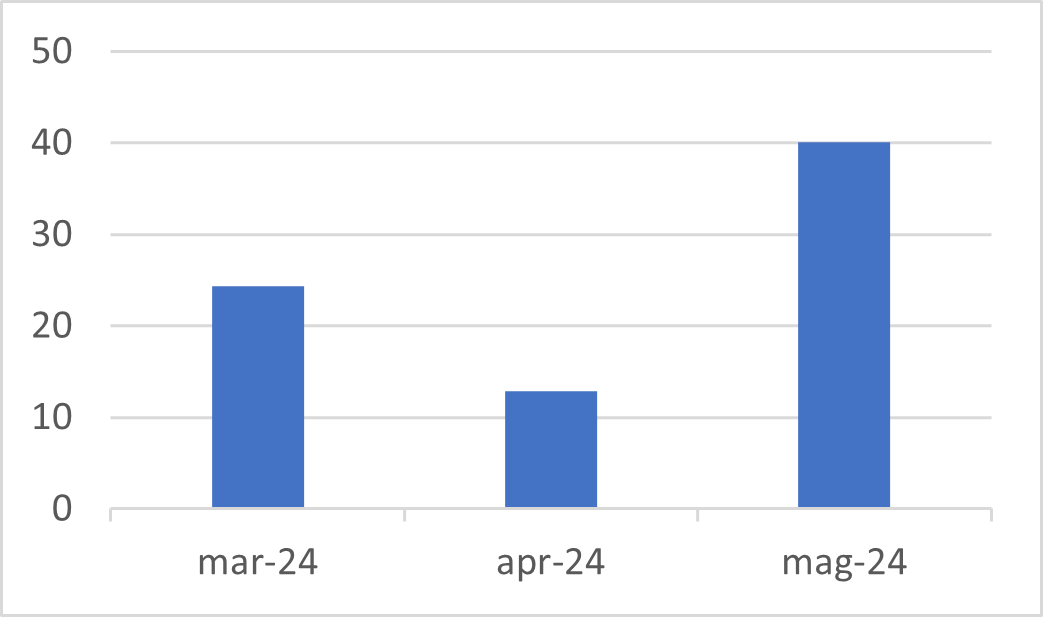 Numero di e-mail di phishing miste, marzo-maggio 2024