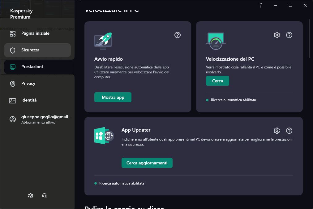 Tra le due categorie, Kaspersky ha inserito l’inedita, per i propri prodotti, scheda Prestazioni. Una raccolta delle principali funzioni utili a mantenere il controllo sul proprio dispositivo. Quelle fino a qualche tempo fa spesso raccolte sotto il nome di utility. Tra le più interessanti, certamente il backup. In pratica, lo stesso modulo presente in Total Security, ora esteso all’intera offerta. Per chi utilizza un software dedicato, la possibilità di risparmiare. Per chi invece non lo usa, l’occasione buona per imparare un’ottima abitudine.