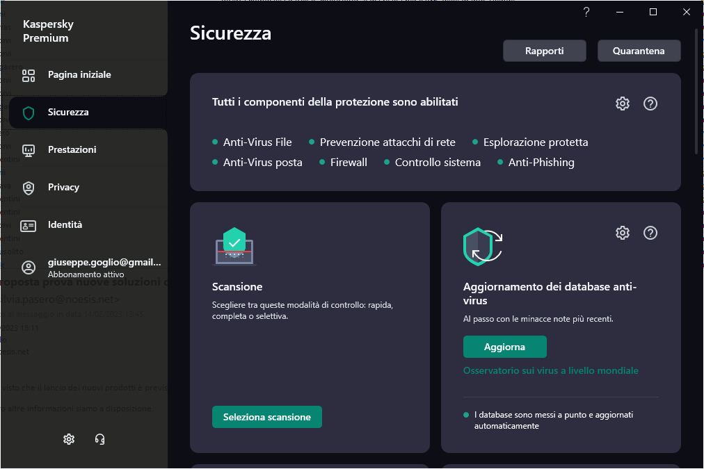 In più, le principali impostazioni che è bene avere sempre sotto controllo e a portata di mano. A partire da una sempre utile scansione, prima opziona da considerare di fronte a situazioni sospette. La scelta tra scansione selettiva o completa, istantanea o in background va valutata anche in base alle risorse hardware e al tempo disponibili, considerando naturalmente l’impatto sulle prestazioni.