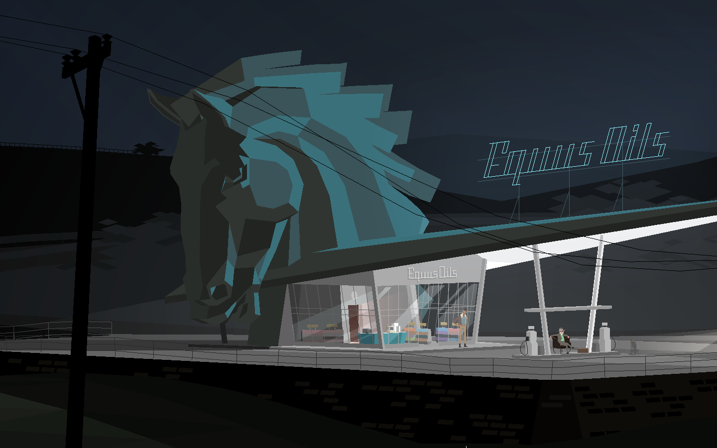 krz2Dal fatto che i dialoghi frequentemente sono (volutamente) paradossali e dalla dinamica già delle prime fasi di gioco si capisce che il tutto è sempre “guidato”. Indipendentemente da ciò che diciamo il gioco prende alla fine la stessa direzione e i dialoghi mettono in evidenza i medesimi elementi. È necessario perché i dialoghi raccontano la storia del gioco e dei suoi personaggi. Per certi versi, Kentucky Route Zero è un racconto animato più che un gioco.