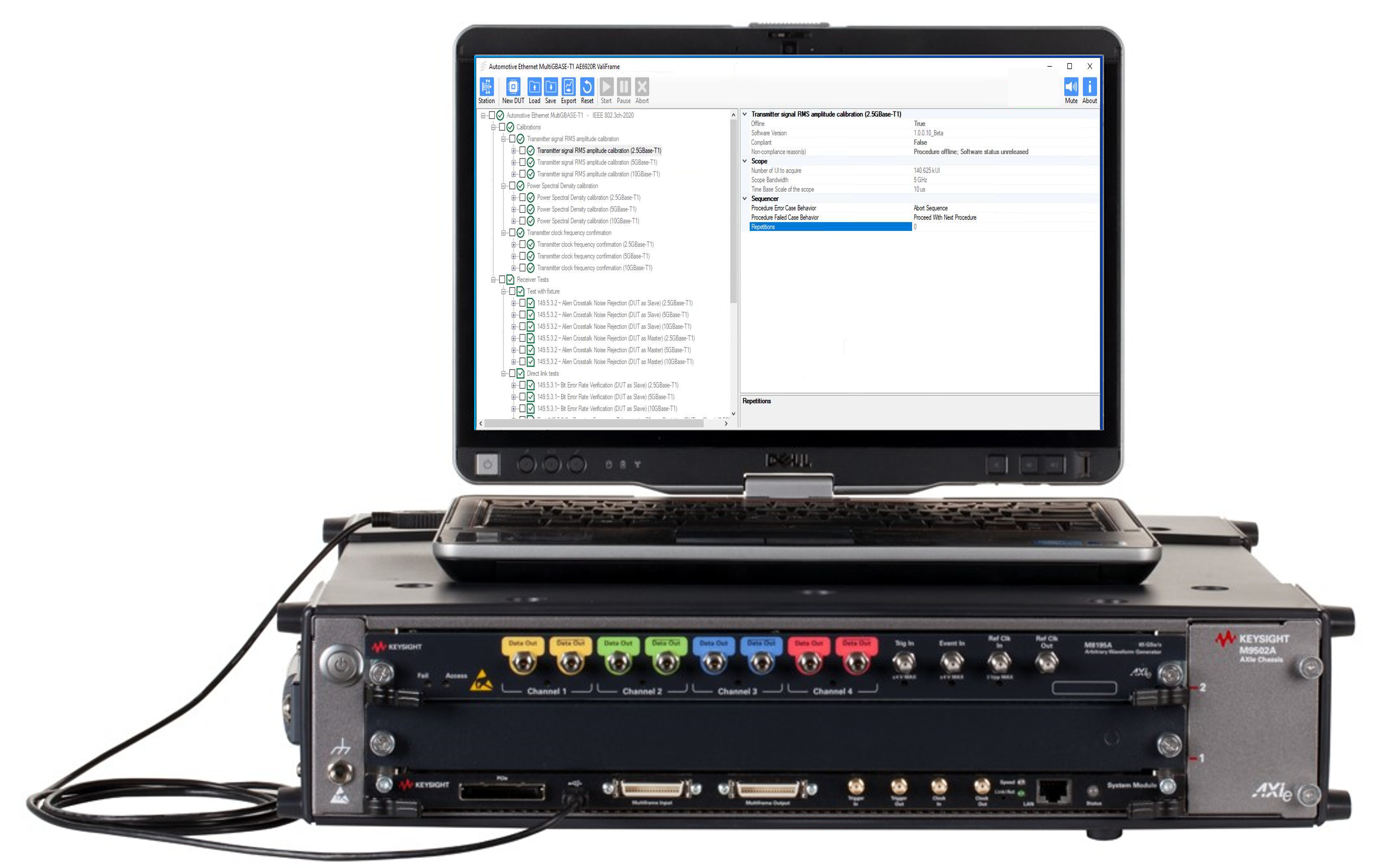 Keysight’s Receiver Test Compliance Solution for Automotive Ethernet MutiGBASE-T1 provides the hardware, software, cables, and accessories needed for compliance and design characterization testing for these next-generation devices. The Receiver Test Compliance Software for Automotive Ethernet MutiGBASE-T1 helps automakers and engineers stress-test and validate receiver performance in harsh automotive environments and verifies IEEE 802.3ch, Open Alliance TC15 standards. This solution was developed in collaboration with BitifEye and Wilder Technologies, and offers the following key features: