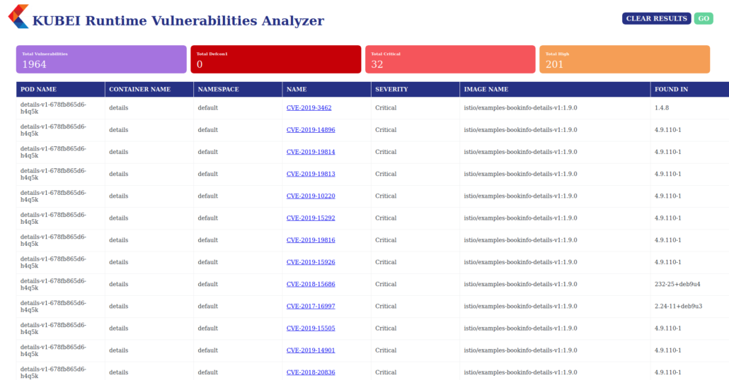 Tra le funzionalità chiave della nuova soluzione c’è la configurazione one-clic del container e il rilevamento delle vulnerabilità in runtime, in tutti i cluster Kubernetes gestiti. In pochi minuti, Kubei riassume e fa un quadro di tutte le vulnerabilità esistenti nei deployment runtime. Con questo, il DevOps saprà immediatamente quali container contengono delle vulnerabilità, dove queste vulnerabilità esistono (immagine, pod, container e namespace) e cosa deve essere patchato o sostituito.