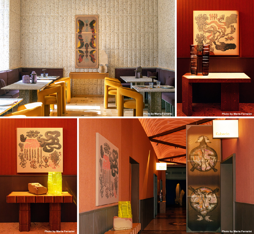 Tre opere sono esposte in Alchemic Corridor, mentre una si trova all'Herbarium Restaurant. Anche le sciarpe indossate dal personale sono state stampate con la tecnologia di FOREARTH.