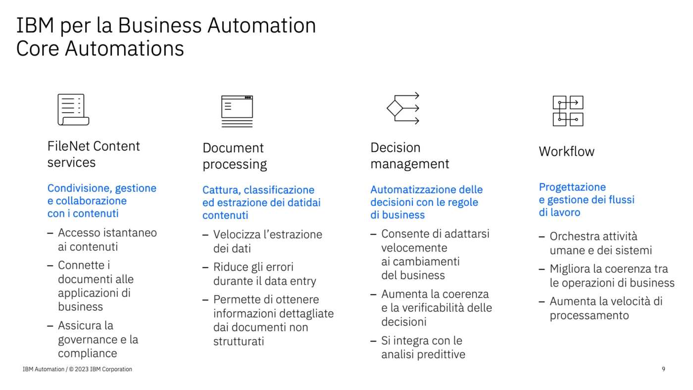 Dal punto di vista dei processi aziendali però, tutto questo interessa relativamente. A contare veramente è l’impatto risultante in termini di automazione e quindi di efficienza. A partire dal garantire l’uniformità, scongiurando il rischio di vedere regole applicate diversamente a seconda del dipartimento, con conseguente difformità nelle relative decisioni.
