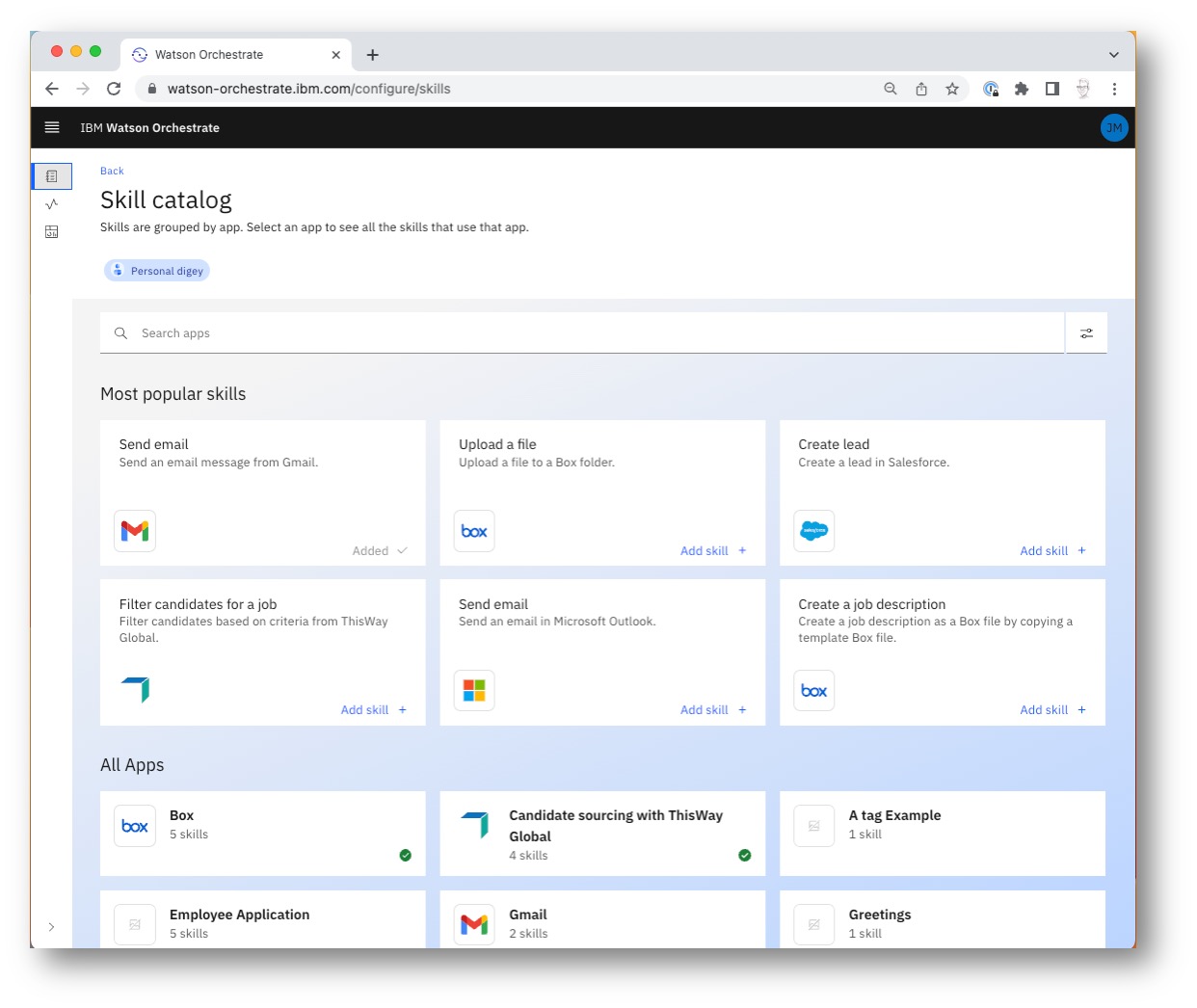 Un traguardo tanto più raggiungibile quanto più sarà completa la comprensione dei processi. Per agevolare l’operazione, watsonx Orchestrate mette a disposizione anche una serie di Skill predefinite. Moduli per procedure standard pronte per l’uso e integrabili con i sistemi aziendali. Dalla gestione di mail, messaggi e file, fino al personale, passando per le comuni attività quotidiane di un team.