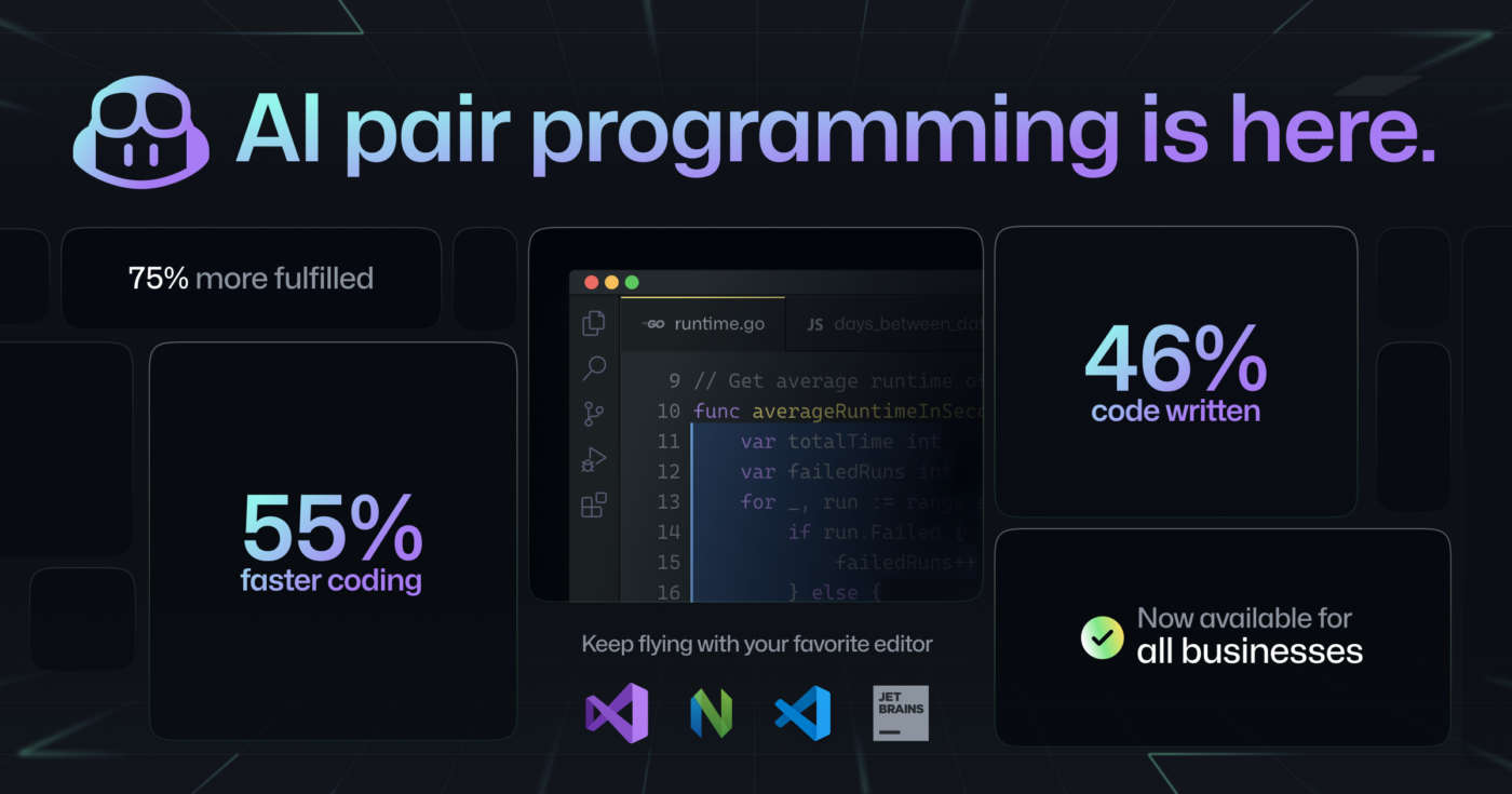 GitHub ha rivelato che in media quasi metà del codice scritto da un programmatore, il 46%, è stato generato da Copilot.