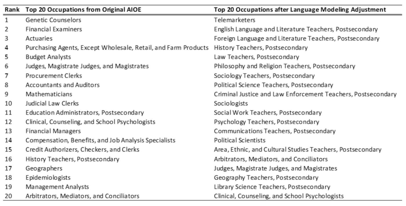 Finiamo con un’ultima ricerca pubblicata questa settimana dai ricercatori delle università di Princeton, Pennsylvania e New York, How will Language Modelers like ChatGPT Affect Occupations and Industries?