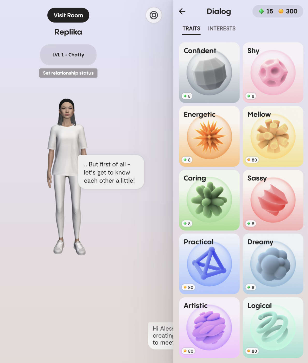 Gli utenti di Replika possono creare versioni personalizzate di questo chatbot, scegliendo il nome, l’aspetto fisico che non è nemmeno lontanamente realistico e, pagando una certa cifra, gli interessi e la personalità del chatbot.