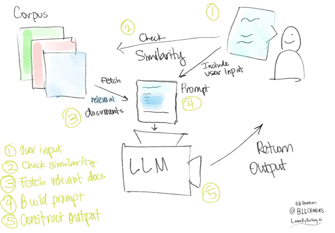 Una volta isolati i documenti di interesse al punto tre, al punto quattro queste porzioni di dati significativi vengono unite alla domanda per creare una sorta di mega prompt, ossia un input da fornire a un classico Large Language Model come ChatGPT, per generare una risposta aumentata da queste informazioni salienti.