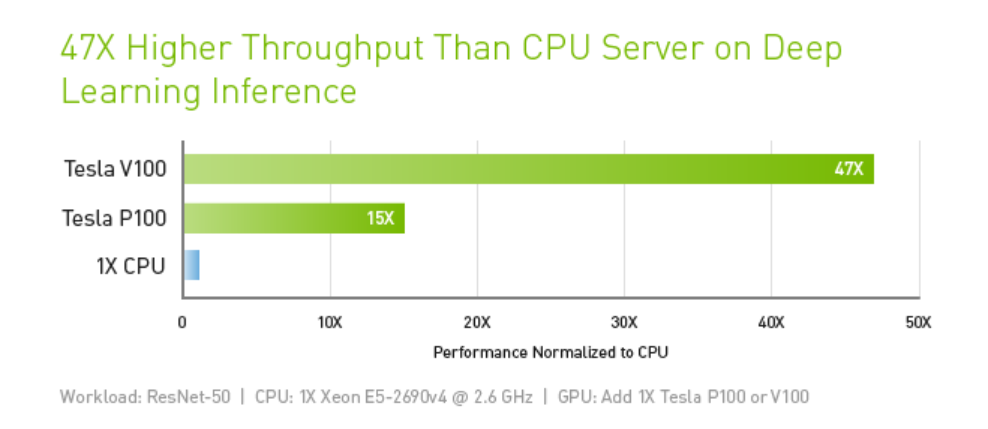 In confronto lo stesso addestramento su CPU può richiedere mesi o addirittura essere impraticabile per modelli molto grandi, visti i tempi troppo lunghi rispetto alla necessità applicativa.