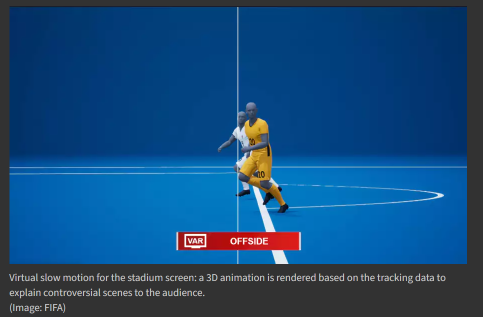 Tra le tante applicazioni, forse la più interessante, pervasiva al momento è costituita da quello che è chiamato il semi automated offside out o fuorigioco semiautomatico.