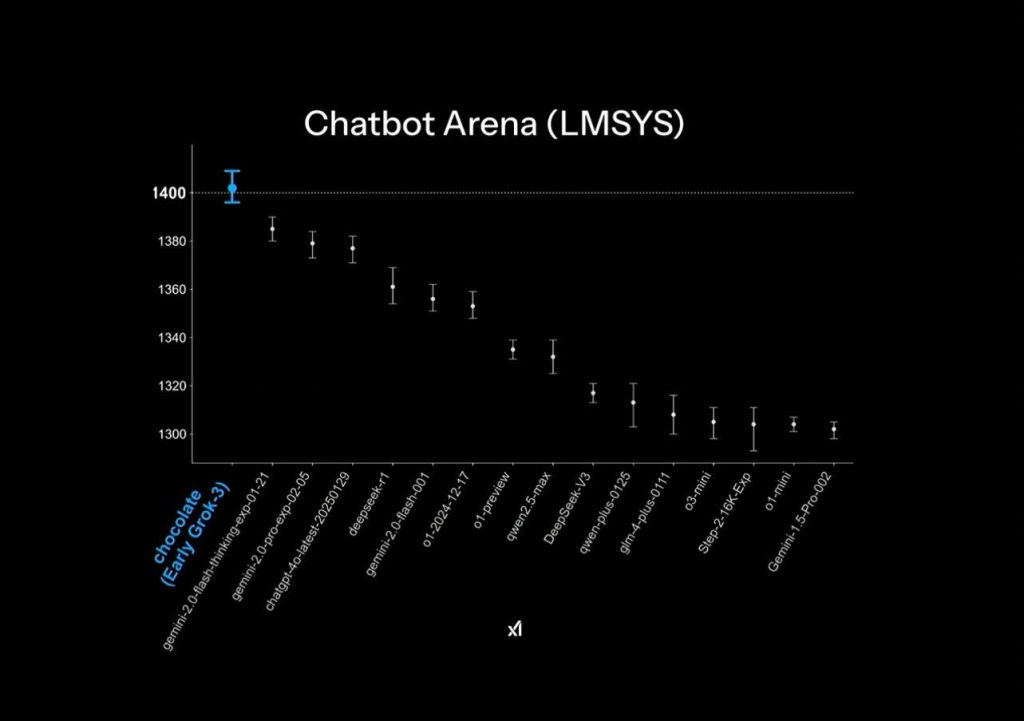 In questa immagine vediamo come Grok 3, il nuovo modello di xAI, abbia raggiunto la vetta della classifica della Chatbot Arena, diventando il primo modello a superare il punteggio di 1.400.