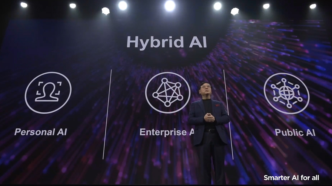 Il Presidente e CEO Yuanqing Yang è stato accolto sul palco con una nuova soluzione di comunicazione completa basata sull’intelligenza artificiale per le persone affette da SLA, che combina avatar AI, tecnologia di tracciamento oculare e LLM predittivi.
