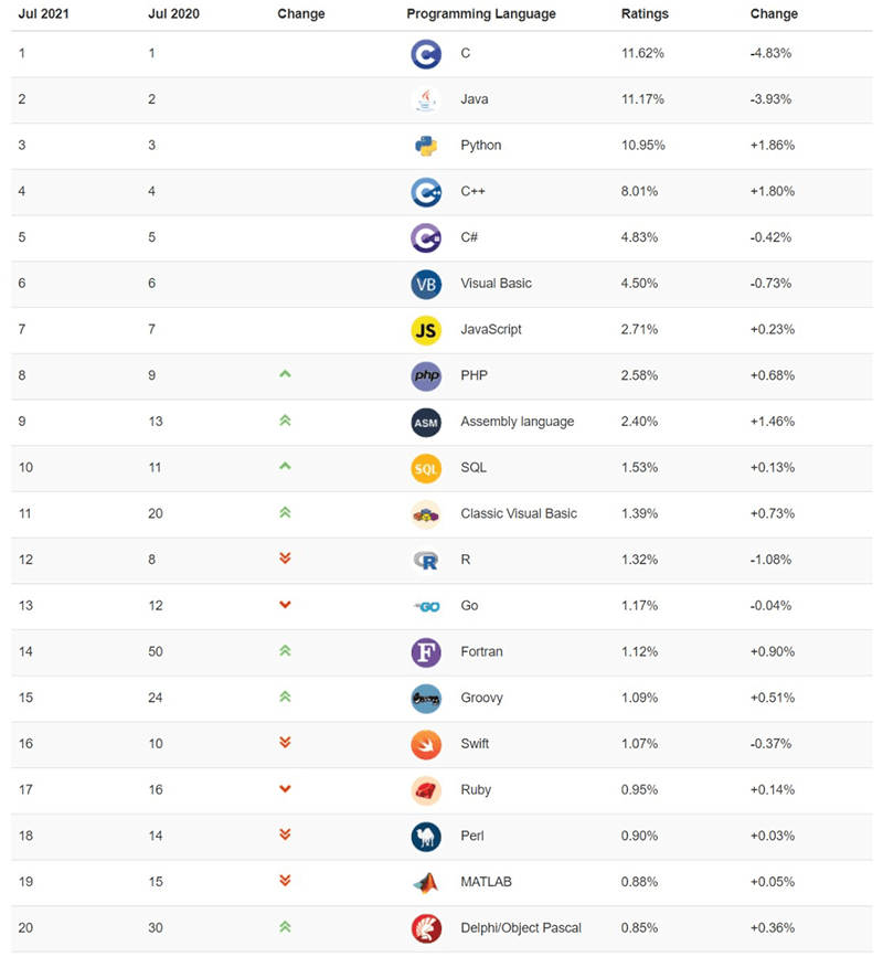 Il Tiobe Index, curato dalla società olandese specializzata nella valutazione e nel monitoraggio della qualità del software, misura la popolarità dei linguaggi di programmazione e celebra in questo mese di luglio il suo ventesimo anniversario.