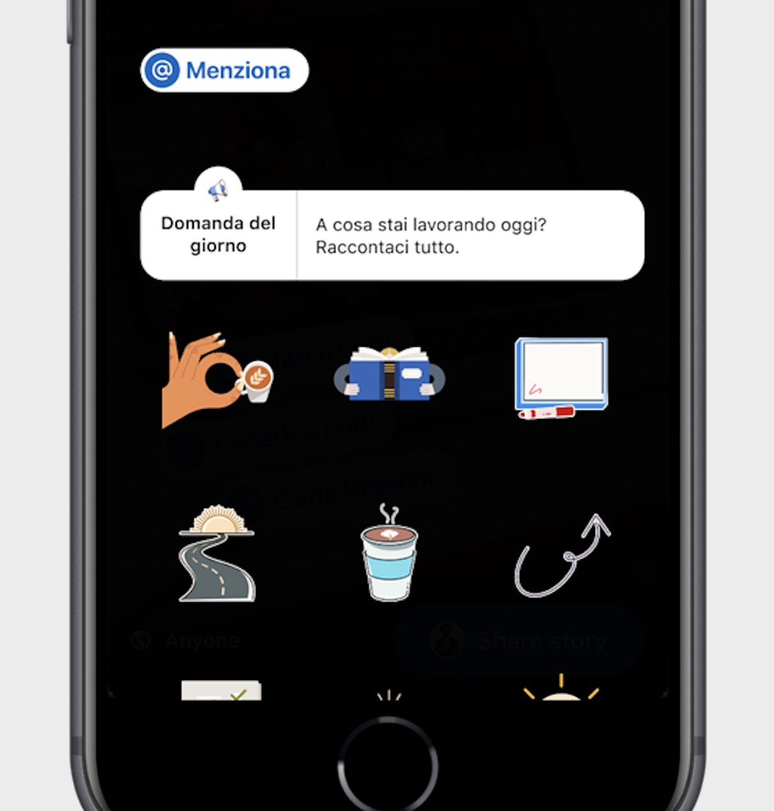 Le storie possono essere personalizzate con testo e adesivi a tema e sarà possibile avviare una conversazione tramite la funzione “Domanda del giorno”.