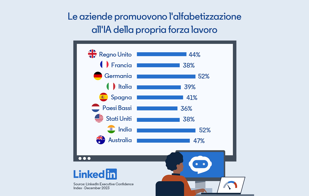 LinkedIn: quasi il 40% delle aziende italiane favorisce l’alfabetizzazione all’AI