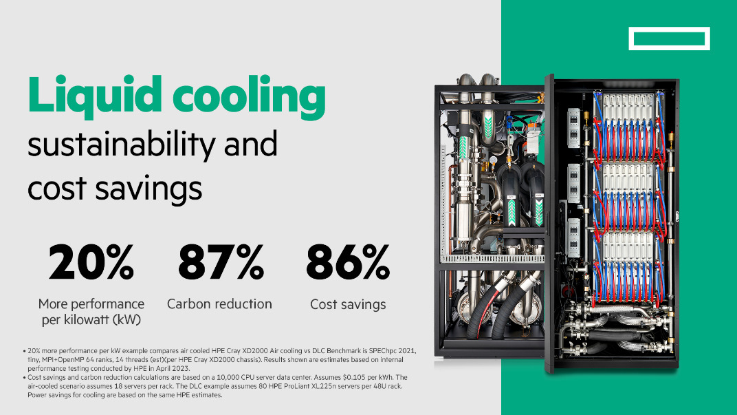 HPE vanta decenni di esperienza nell’innovazione e nella fornitura di sistemi raffreddati a liquido in tutto il mondo, creati per operare in modo efficiente in sistemi su larga scala che eseguono carichi di lavoro HPC (High Performance Computing).