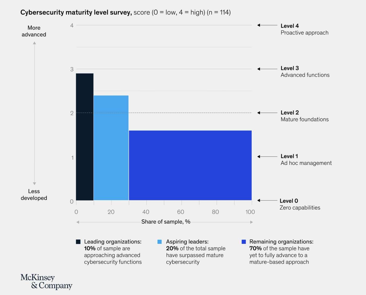 Per stabilire il livello di maturità McKinsey ha condotto una survey relativa al livello di maturità della sicurezza informatica di oltre 100 realtà in vari settori industriali.