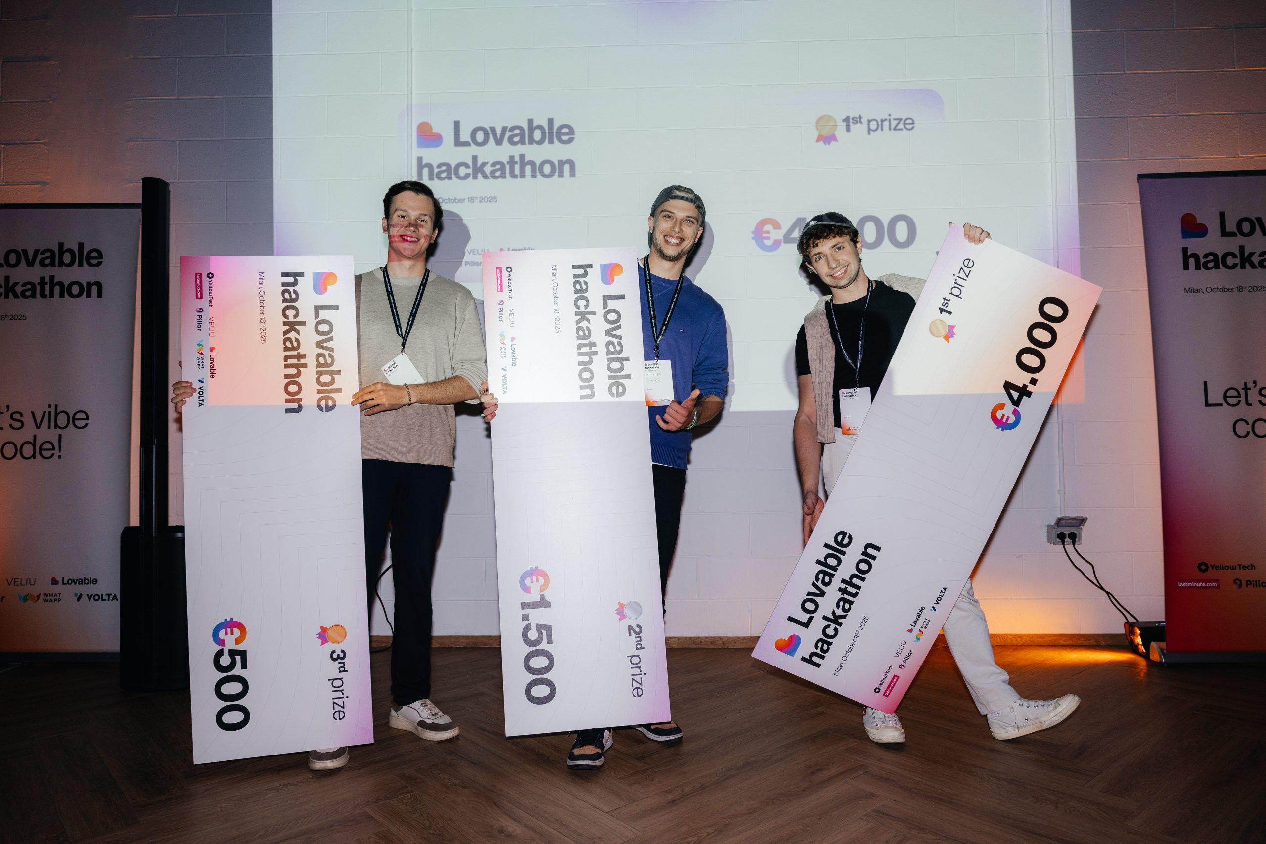 A vincere è stato Andrea Bonarrigo (esultante nella foto), 22 anni, con una replica di Airbnb solida e intuitiva. Etienne Sgarbi e Riccardo Argenziano, rispettivamente secondo e terzo classificato, hanno invece presentato versioni personalizzate di Shopify e Airbnb. A valutarli è stata una giuria che univa competenze tecniche e imprenditoriali: Sophia Nabil Gustafsson di Lovable, Antonio Pisante di Yellow Tech, Giulio D’Alì Aula di Veliu, Martina Gianfreda di Whatwapp, Elia Bidut di Stema, Gabriel Guinea Montalvo di Pillar, Alessandro Rozza di lastminute.com e Mario Parteli di Volta Software.