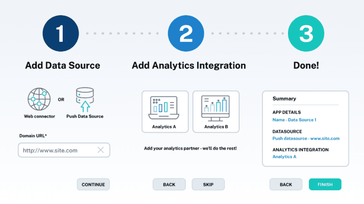 Poi, la velocità: un set-up di ricerca a basso rischio e a basso sforzo pensato praticamente per qualsiasi utente aziendale, con indicizzazione ad alta velocità e time-to-value migliorato grazie alla facilità d’uso. E, inoltre, con analytics che permettono agli utenti di ottimizzare in tempo quasi reale e di adattarsi ai comportamenti degli utenti.