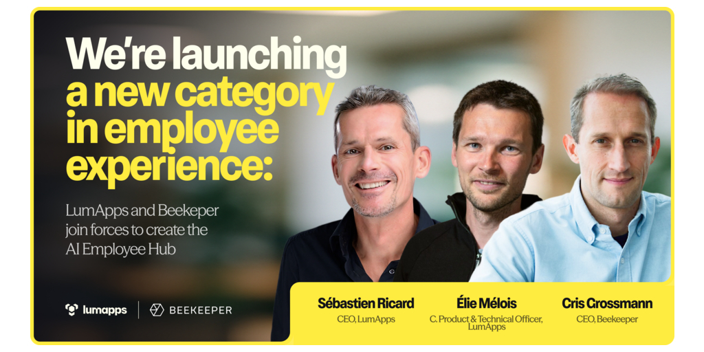 “LumApps redefined employee engagement through innovation and AI,” said Cris Grossmann, CEO and Co-Founder of Beekeeper. “Both companies share a vision and a passion of empowering employees. This partnership represents a bold move that will transform our industry, putting the success of desk and frontline employees at the center of everything we do.”