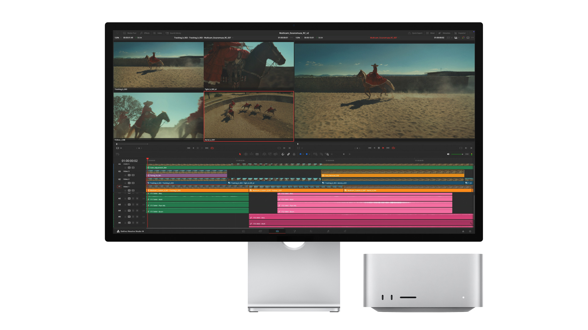 - Con il doppio delle risorse del chip M3 Max, il media engine nel chip M3 Ultra può eseguire ancora più elaborazioni video simultanee. Il chip offre codifica video H.264 dedicata con accelerazione hardware, HEVC e quattro motori ProRes di codifica e decodifica, che consentono al chip M3 Ultra di riprodurre fino a 22 stream di video ProRes 422 a 8K.