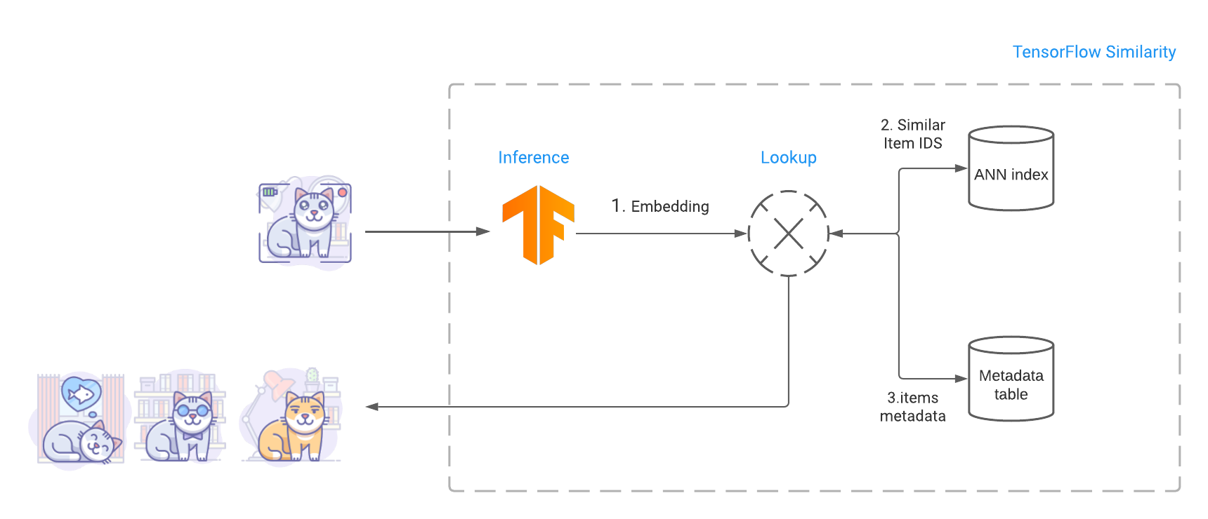 Una volta che il modello è addestrato, si costruisce un indice che contiene gli embedding dei vari elementi che si vuole rendere ricercabili. Poi, al momento della query, TensorFlow Similarity sfrutta la ricerca Fast Approximate Nearest Neighbor (ANN) per recuperare gli elementi più vicini dall’indice in tempo sub-lineare.