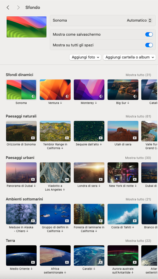 Gli sfondo sono suddivisi in categorie: per espandere una categoria facciamo clic su Mostra tutto.