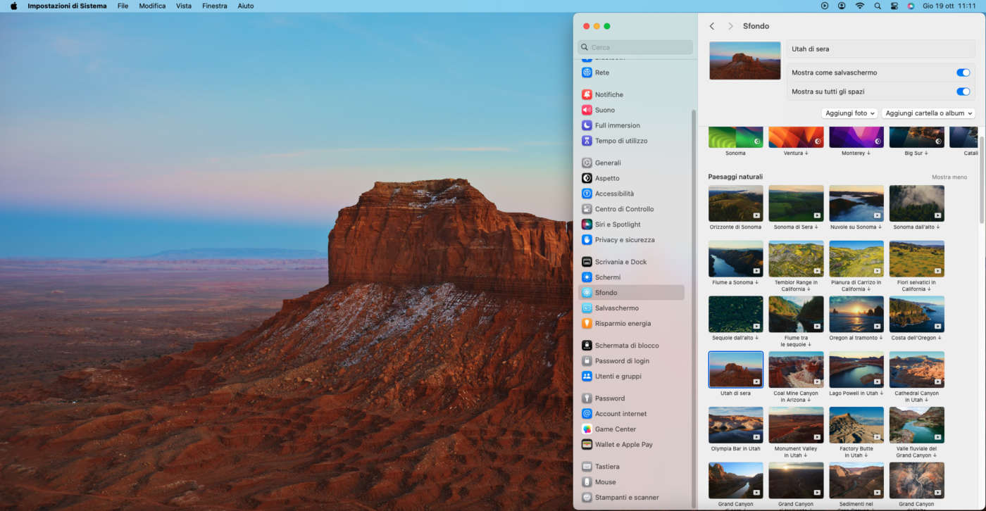 In macOS Sonoma, sono davvero numerose le immagini che possiamo scegliere per personalizzare lo sfondo della scrivania del Mac.