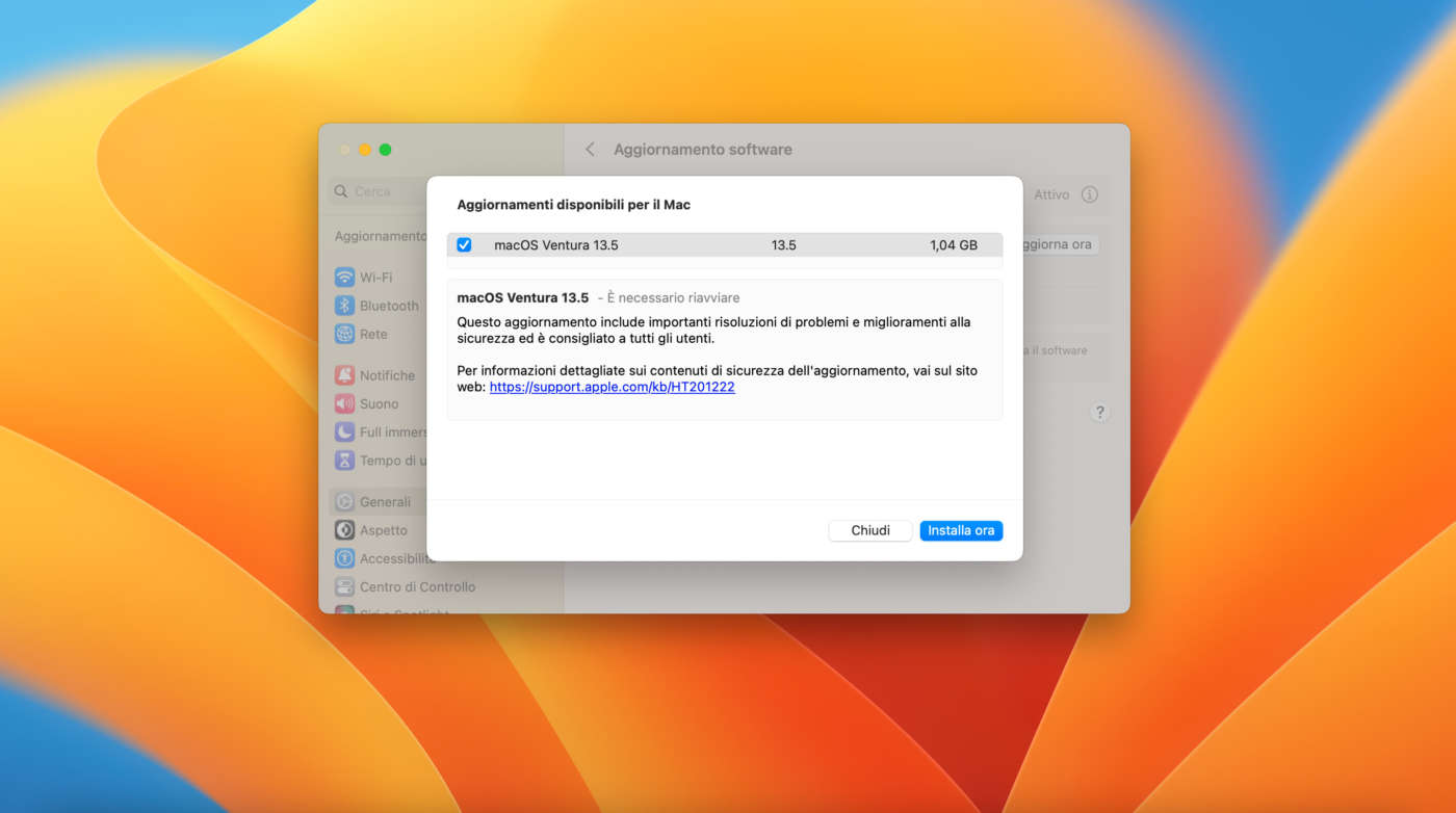 Apple ha rilasciato macOS Ventura 13.5, il nuovo aggiornamento del sistema operativo del Mac: non ci sono nuove funzioni, ma risoluzioni di problemi e fix per la sicurezza.