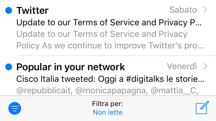 Di default il filtro mostra solo le mail non lette, toccando la dicitura Filtra per: Non lette si passa a una schermata che permette di impostare filtri diversi. Tra le opzioni: mail contrassegnate, mail per cui siamo destinatari espliciti o in copia, mail con allegati, mail mandate da mittenti VIP.