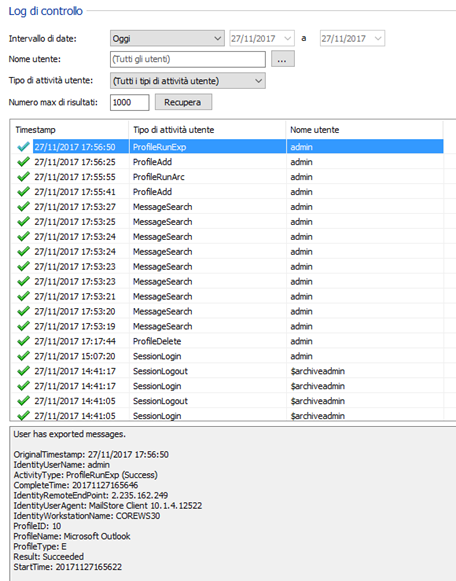 Il controllo delle informazioni è essenziale e MailArchive dispone di molte interessanti funzionalità per effettuarlo: