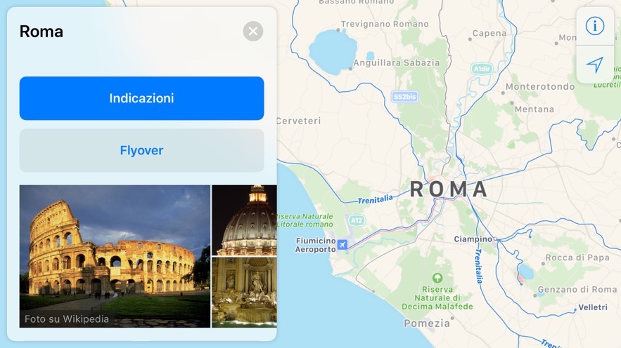 Oppure la spettacolare modalità Flyover, che offre una vista aerea tridimensionale di alcune città, come se le esplorassimo in elicottero. Flyover consente anche di effettuare dei tour delle città ed è disponibile anche per diverse località italiane.