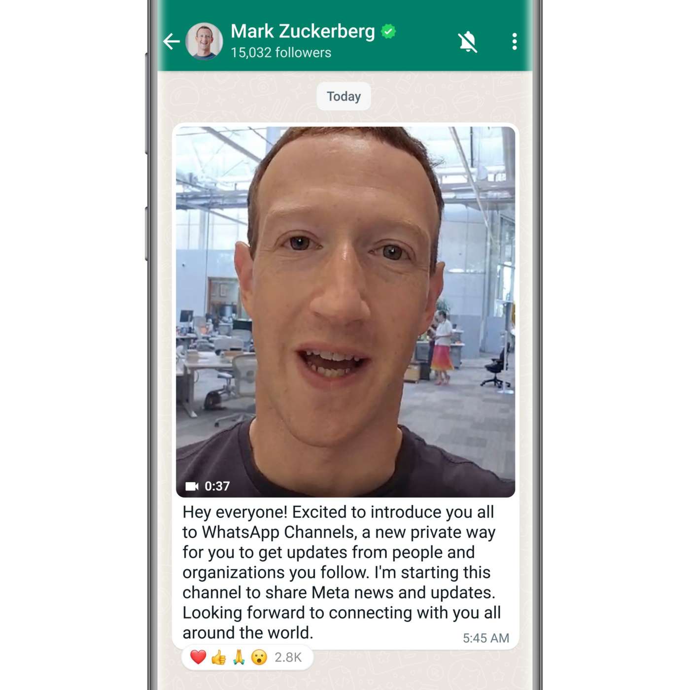 Mark Zuckerberg annuncia il lancio dei Canali WhatsApp in tutto il mondo