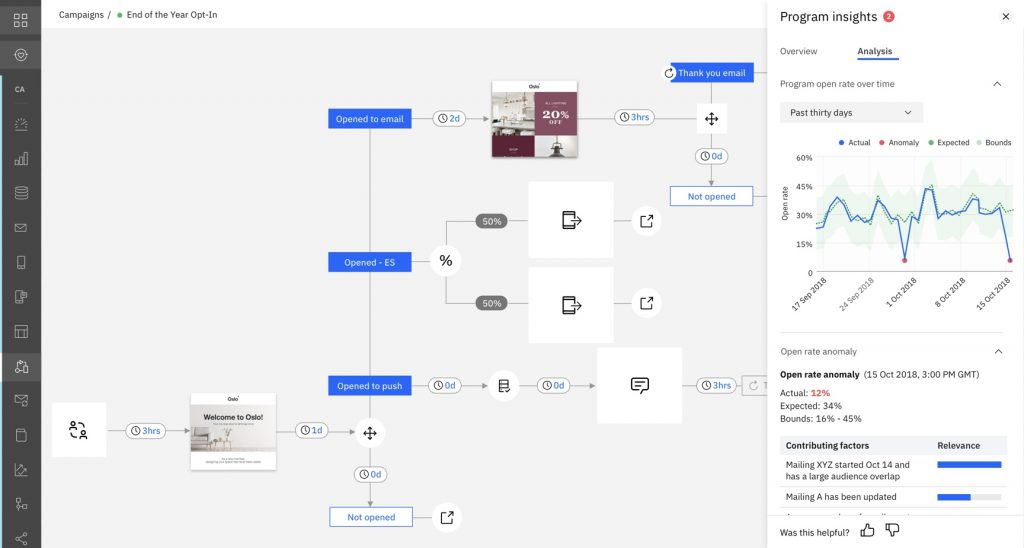Nel 2019, Ibm ha venduto il suo portafoglio di prodotti per il marketing e il commercio a Centerbridge Partners, che ha costituto una nuova società di marketing cloud autonoma: Acoustic. La soluzione precedentemente chiamata Campaign Automation ora si chiama semplicemente Campaign e fa parte della suite Marketing Cloud di Acoustic assieme ad altre applicazioni: Experience Analytics, Content, Journey Analytics, Digital Analytics ed Exchange. Campaign è una piattaforma di marketing digitale messa a punto per consentire a chi si occupa di marketing di progettare campagne più efficaci. Utilizza i dati comportamentali e di profilo provenienti da qualsiasi fonte per creare campagne pertinenti su e-mail, web, push mobile, SMS, social, messaggistica di gruppo e canali offline tra cui televendite. È disponibile in tre modalità: Essentials, Standard e Premium.