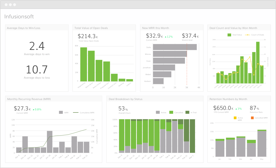 Infusionsoft, più che essere solo una piattaforma di marketing automation con molte funzionalità avanzate, è un vero e proprio CRM multifunzione in grado di gestire anche l’automatizzazione delle vendite e integrabile con molte altre applicazioni per semplificare l’intero processo aziendale. Viene ritenuto tra i più validi software per la gestione di funnel avanzati che consentono di gestire all’interno della stessa piattaforma il marketing automatizzato, il flusso commerciale di lavorazione, la transazione di servizi e prodotti.