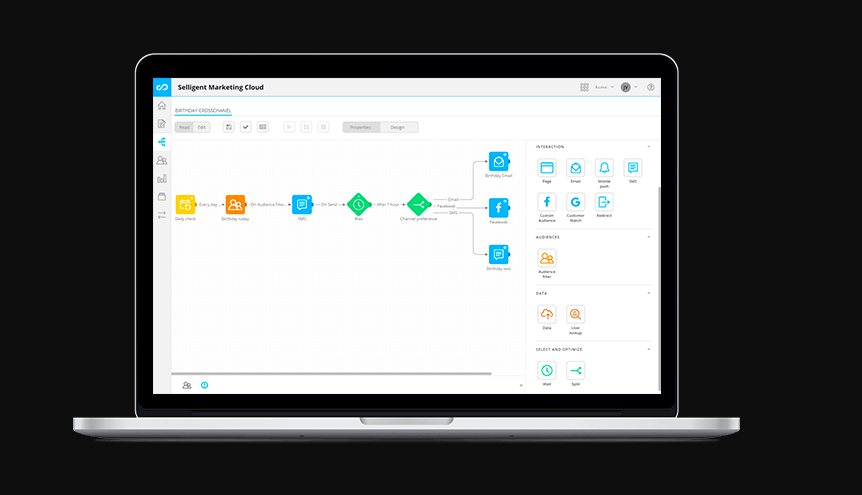 Selligent Marketing Cloud è una piattaforma di marketing automation che aiuta i team di marketing a massimizzare i momenti di interazione con i consumatori. La piattaforma si avvale di Selligent Cortex, motore nativo di intelligenza artificiale, appositamente progettato per il marketing, che propone raccomandazioni e messaggi iper-personalizzati sui diversi canali, come web, e-mail e app. Inoltre, grazie alla sua flessibile Customer Data Platform, Selligent mette a disposizione dei marketer un archivio di dati del consumatore, che li organizza e protegge alimentando in tempo reale le campagne sui diversi canali. A questo si aggiunge la geolocalizzazione mobile, che integra funzionalità di geofencing e beacon per comunicare in tempo reale in base alla posizione del consumatore. Infine, Selligent Marketing Cloud dispone di una nuova interfaccia utente e di una nuova user experience che rendono la piattaforma più intuitiva pur permettendo una semplice gestione di numerosi customer journey anche sofisticati.