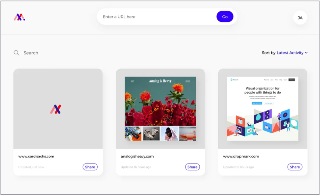 MarkUp rende questo processo molto più lineare e rapido: agli utenti basta aggiungere semplicemente l’URL del proprio sito alla piattaforma e MarkUp trasforma il sito web in un canvas dinamico pronto per registrare i feedback e i commenti.