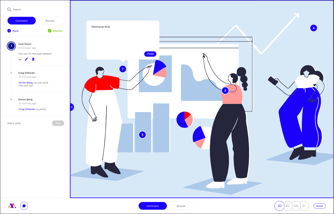 Gli utenti della piattaforma hanno la possibilità di invitare in modo facile colleghi e clienti, per collaborare e commentare in tempo reale sul design, il tutto in un’unica posizione e, soprattutto, in una modalità intuitiva e visuale, particolarmente adatta per progetti di questo tipo.