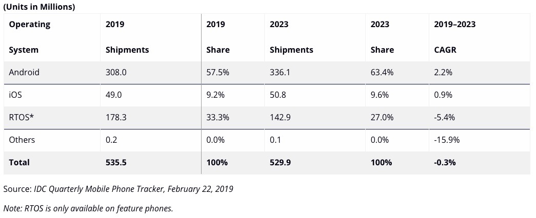 Android continuerà a consolidare la propria posizione. Poiché i consumatori continuano a sostituire i loro feature phone con smartphone dotati di Android, in Medio Oriente e Africa. Ciò, grazie alla offerta più conveniente di dispositivi, di questa piattaforma.