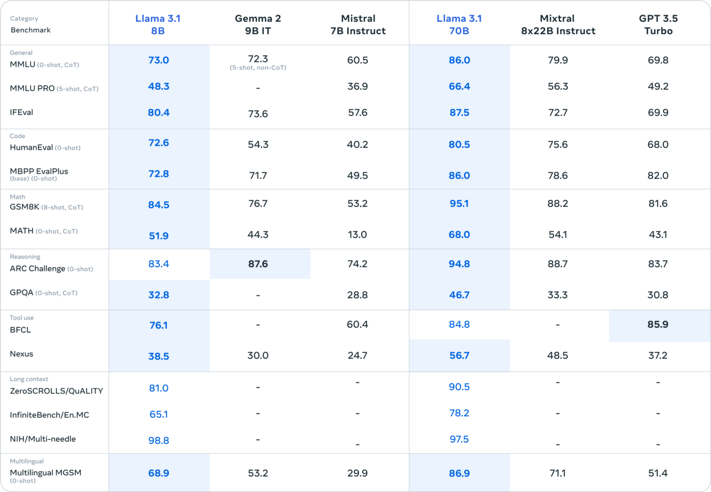 Per questa release, il team di sviluppo ha valutato le prestazioni su oltre 150 set di dati di riferimento che coprono un’ampia gamma di lingue. Inoltre, Meta ha eseguito valutazioni umane approfondite per confrontare Llama 3.1 con modelli concorrenti in scenari reali. La valutazione sperimentale di Meta – sottolinea l’azienda – indica che il suo modello di punta è competitivo con i principali modelli foundation in una serie di compiti, tra cui GPT-4, GPT-4o e Claude 3.5 Sonnet. Inoltre, i modelli di Meta più piccoli sono competitivi con i modelli chiusi e aperti che hanno un numero simile di parametri.