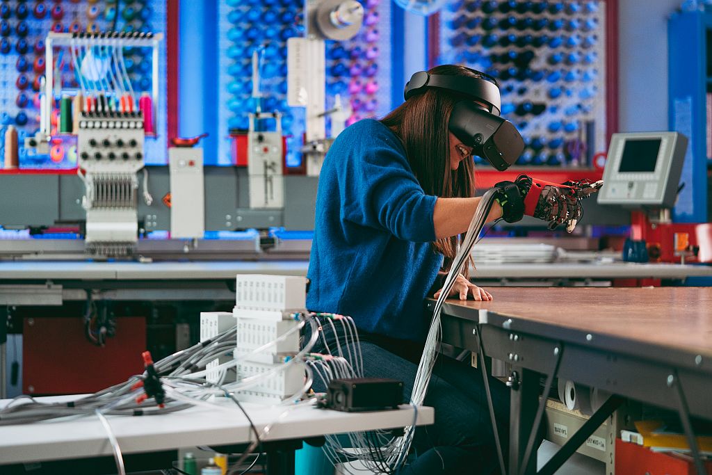 Il team dei materiali di Reality Labs Research sta esplorando nuove tecniche di produzione che un giorno potrebbero consentire di adattare ogni guanto tattile su misura per la massima precisione e comfort tattili. Raggiungere questo richiederà lo sviluppo di nuovi metodi di progettazione e costruzione di piccoli attuatori e la creazione di nuovi processi di lavorazione a maglia e ricamo per incorporarli con precisione nei guanti.