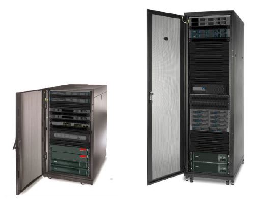 Micro Data Center FX 23U: realizzato con Rack NetShelter FX 23U con imballo antiurto; protezione dell’alimentazione con 2 Ups da 3 kVA, 120 V, con NMC; completo di kit cavi di alimentazione e di sistema di monitoraggio ambientale e sicurezza con apparecchiature NetBotz 250 e accesso rack (125 kHZ); raffreddamento attraverso la parte superiore del rack (Kooltronic).