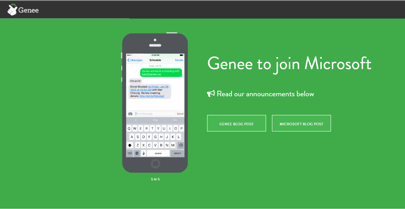 L’intenzione è quella di integrare Genee in Office 365, dotando la piattaforma di un sistema intelligente in grado di interpretare richieste del tipo “fissiamo un appuntamento a pranzo questa settimana” e trasformarle in appuntamenti sul calendario, dopo aver analizzato le agende dei partecipanti.