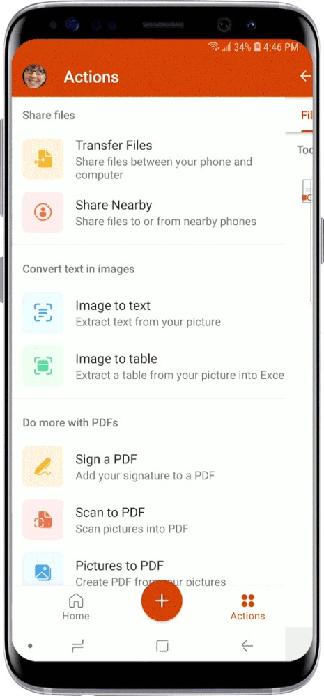 Ma le novità non si esauriscono con l’unione delle app. Il nuovo Office mobile acquisisce nuove funzionalità che sfruttano in modo specifico i punti di forza dei dispositivi mobili, come ad esempio la fotocamera. Inoltre, un nuovo pannello Azioni aiuta l’utente a svolgere molti dei task più comuni.